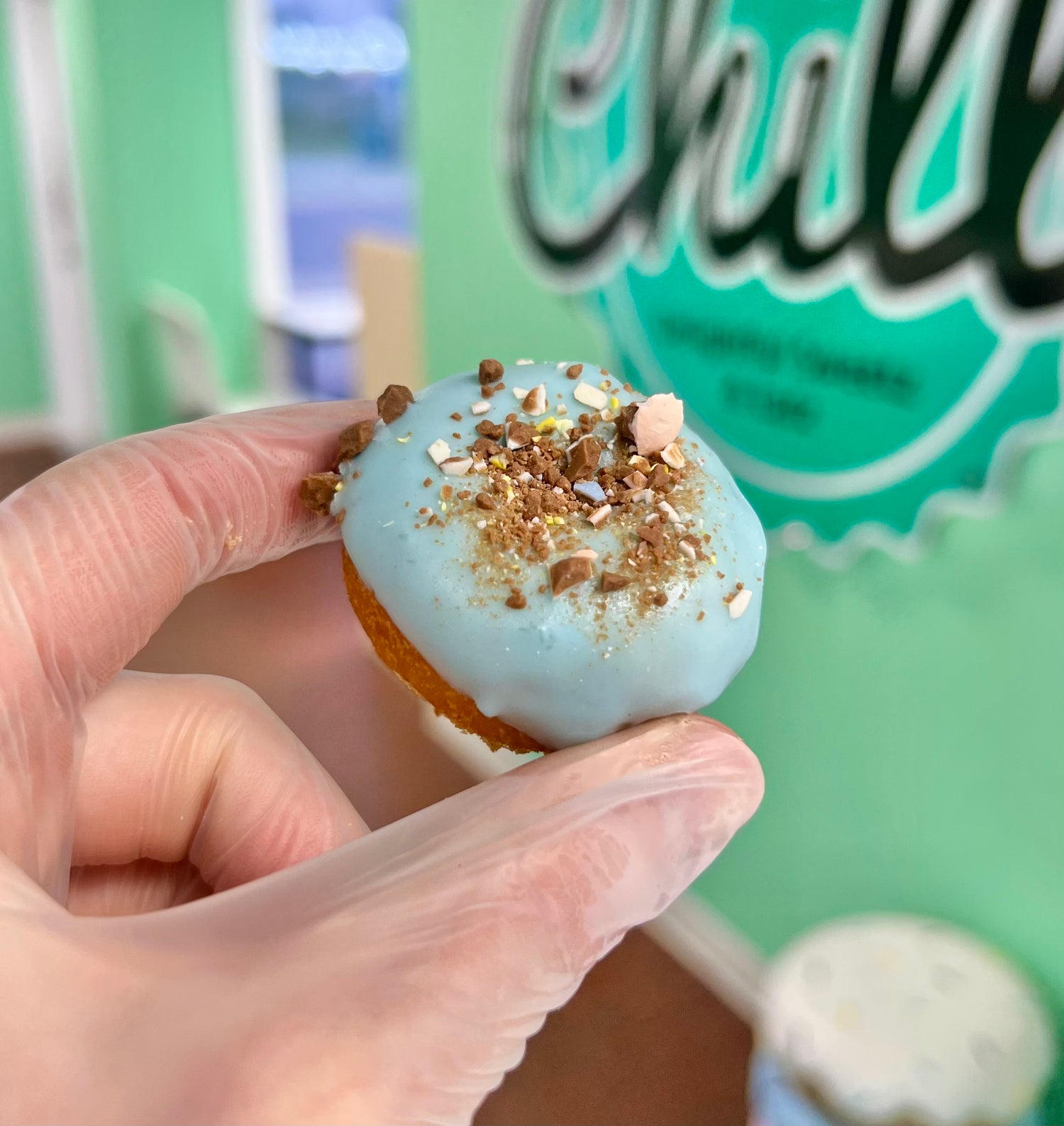 Our original recipe donut dipped in a delicious sweet icing loaded with crushed Cadbury egg pieces.