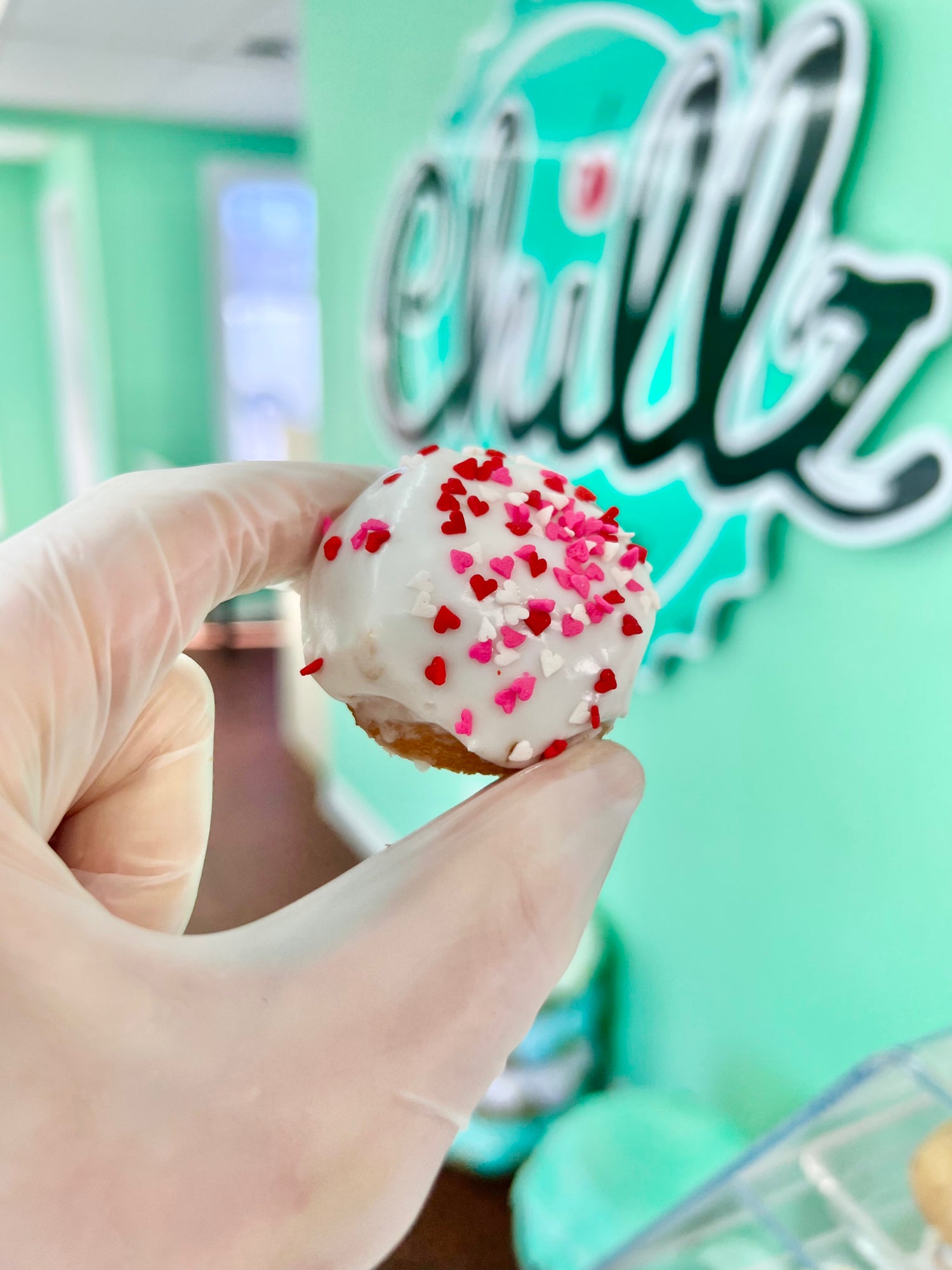 Our light and fluffy donut dipped in a rich chocolate icing with a dash of heart-shaped festive sprinkles.